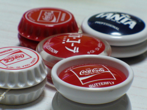 "コカ・コーラ ヨーヨー&復刻デザインボトル"のヨーヨーですな真ん中にある コカ・コーラ の スーパーヨーヨー が欲しかっただけなんだが シークレット の バタフライ が出ても 出てこなくて やっと出てきました。 でもダブリ無し 優秀じゃな。