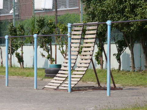 我が母校M小学校の校庭を見て ン!?!? 何だこれは...この板 逆上がりの練習用なのか!? 今時はこんなもんあるのか!? おじさんは心底驚いたぞはぁ〜(溜め息) 何だかなぁ〜 どうなんだろなぁ〜いいのか!?これではてなマップ