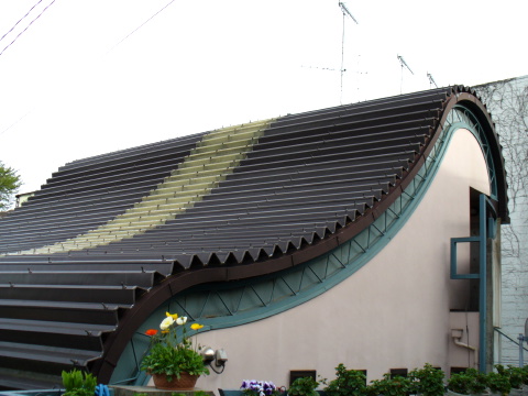 変な屋根発見! キャタピラの様でんなぁ。