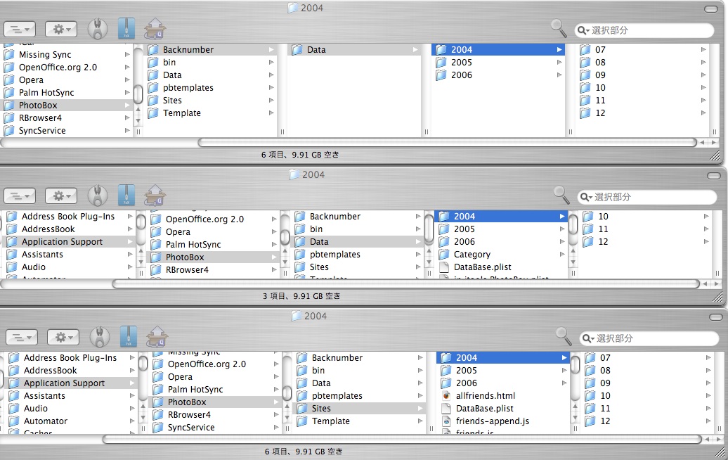 Application Support/PhotoBox/Data/2004/ 以下が何か足りない気が...。これで正しいのか? 正しくないのなら復旧方法は?とかとか なにより "HTML を再構築"出来る様にする方法は? どなたかお知恵を拝借出来ないでしょうか?