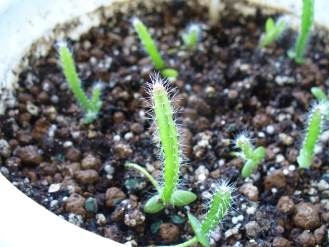 2005/09/18-1 今日のドラゴンフルーツ 以来のドラゴンフルーツだす。何とか かんとか 去年の双葉みたいな状態で冬を越せて、6月ぐらいに間引き、んで やっと最近サボテンの様な感じになってきた。宮古島じゃ もうドラゴンフルーツは 収穫済みだってのにこんなに小さい... 身長くらいに大きくなるはずなんだが 何年かかるやら?!っつうか 株分けせんとな。
