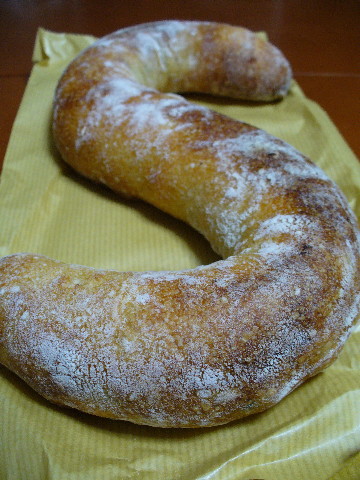 S字型のパン。いやぁ... 写真で見ると微妙ですなぁ まるで う○ち の様でもありますなぁ。これ、近所に出来たパン屋さんで唯一お気に入りのパンなんですな。切るとですな いっぱい甘い豆が入ってて豆が美味しいんですなぁ。ここのパン屋さんは具が美味しいんですなぁ。[食べた地図]ここのページのと その他幾つかの PhotoBox 用テンプレート公開しました。ここに有りますのでよりしければどうぞ...。 ---> Link