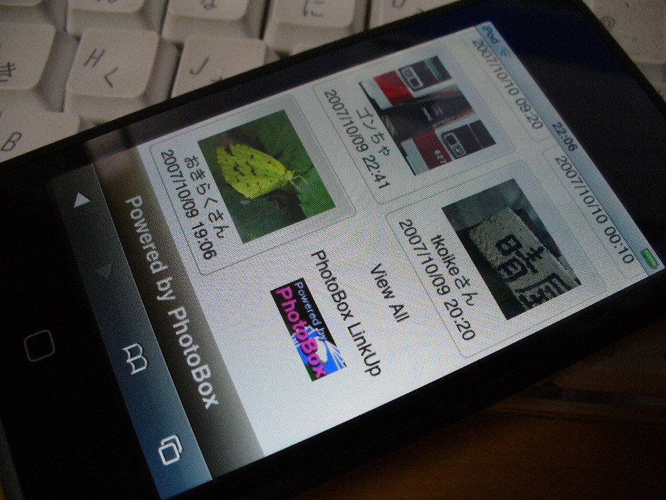 新テンプレート TEST 中。iPod touch 用の CSS も目処が付いて来ただす。後は、Latest Album と View All のページを作って .pbtemplates への落とし込みだすな。iPod touch は楽しいだすなぁ。まだ、出来る事が少ないけど Safari だけでも価値有りだすなぁ。とは言ってみた物の、もちっと オフラインで出来る事が増えると嬉しいんだけどねぇ。
