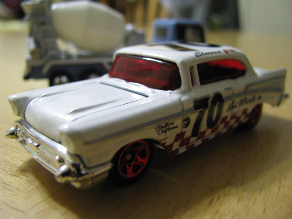 と、久しぶりの挨拶はこれくらいにしておいてっと... で、写真。最近、子供とおもちゃ売り場に行った時に見つけた Hot Wheels のミニカー。これ、たまらなくかっいいんですよ。ほとんど全部がカスタマイズカー。しかも超マニアックと来たもんだ。とりあえずベルエア買って来たんだけどたまらんですなぁ。思わず大人買いしちゃいそうで危険ですな。こんな感じで沢山有るみたいでいかんですなぁ。